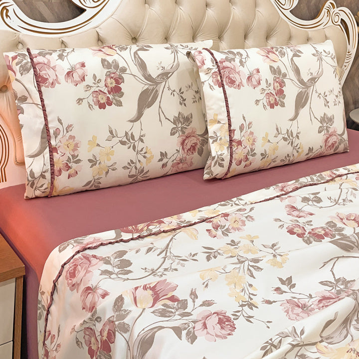 Com estampas florais delicadas da coleção Malva, o jogo traz leveza e elegância para a decoração, combinando facilmente com diferentes estilos de quarto. Cada peça foi desenvolvida com acabamento premium, garantindo durabilidade, cores vibrantes e resistência ao desbotamento, mesmo após múltiplas lavagens.